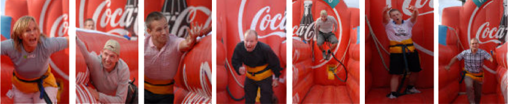 A Horizontal version of the Bungee Jumping craze, but a lot less demanding. Runners fasten into a harness connected to a length of bungee cord which is fastened to the anchor point at the rear of the unit. Two runners must simultaneously run along the inflatable alley and try to place their velcro marker as far out as possible... before the bungee pulls them back. The double alley-way is completely inflatable for safety purposes. Can also be adapted with Basketball! A challenging and entertaining activity for all ages and physical abilities.