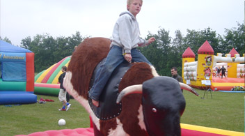 Probably THE original activity in the "alternative" entertainment circuit. The activity which everybody wants to test their skill against... Electronically controlled, using a double Joystick and Vari-speed facilities, and surrounded by a large air mattress for safety when you fall off!