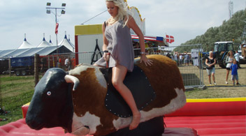Probably THE original activity in the "alternative" entertainment circuit. The activity which everybody wants to test their skill against... Electronically controlled, using a double Joystick and Vari-speed facilities, and surrounded by a large air mattress for safety when you fall off!