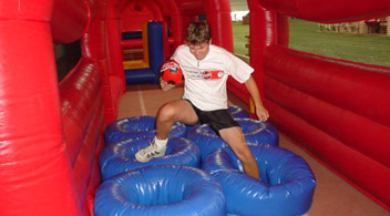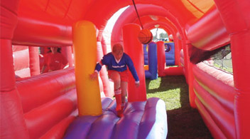 A wide variety of sport related themed inflatables, each with it's own individual challenge creates a fun and very challenging activity for any sporting fan. A race can be arranged between two players, or get the adrenaline pumping by playing as an exciting team relay race. Each obstacle can be individually placed, or can be linked together. A wide range of external obstacles can also be used to handicap the more experienced players. Unlimited sponsorship & branding area makes for huge corporate opportunities.
